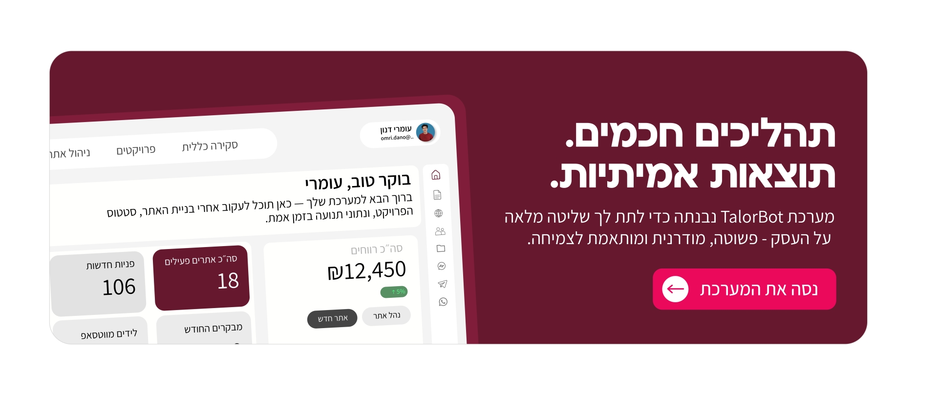 "המערכת של TalorBot הקלה עלינו לזהות לידים חמים ולתעדף אותם באופן אוטומטי - המשמעות הייתה יותר מכירות."